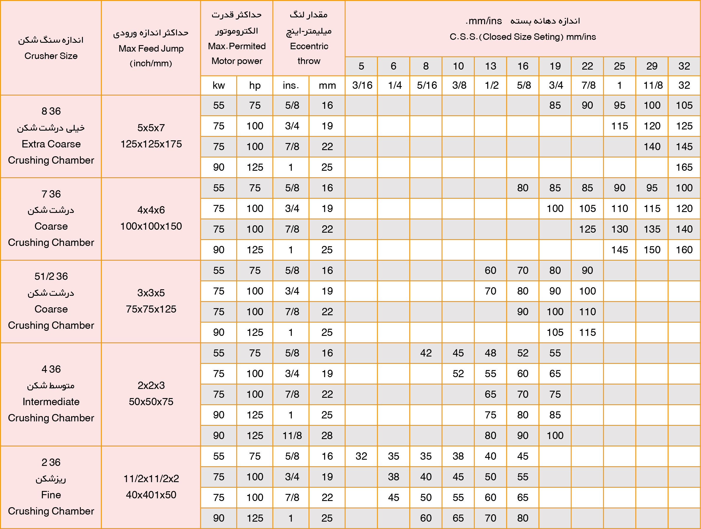 ساختار محکم ،قدرت و ظرفیت بالا در خردایش سنگ ها ، تنظیم آسان ، هزینه و تامین و نگهداری پایین از ویژگی های منحصر به فرد این دستگاه می باشد . عمل خردایش در این سیستم با بسته شدن فاصله بین دو منتل ( که بر روی شفت قرار دارد ) و کانکیو ( که داخل بدنه اصلی یعنی تاپشل نصب شده ) صورت می گیرد.
